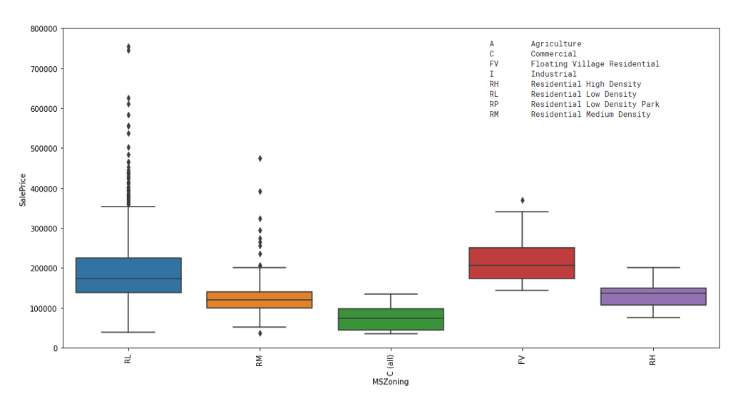 Another hypothesis was that the neighbourhood characterstics could potentially impact the sale price. The below boxplots illustrate the relationships between the variables MSZoning and Neigbourhood. From both the plots, we can clearly see that certain neighbourhoods or type of neighbourhood have higher sale prices as compared to others.